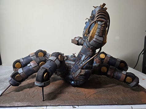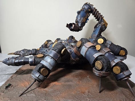 The giant robot scorpion I talked about last time is done! It also won 2nd place in Robot Day on Newgrounds! After starting on it all the way back in January it was left to collect dust for several months before I finally kicked it into high gear a few weeks before the deadline. The sheer size of this model is honestly inhumane. I have to turn it sideways to get it through a doorway.