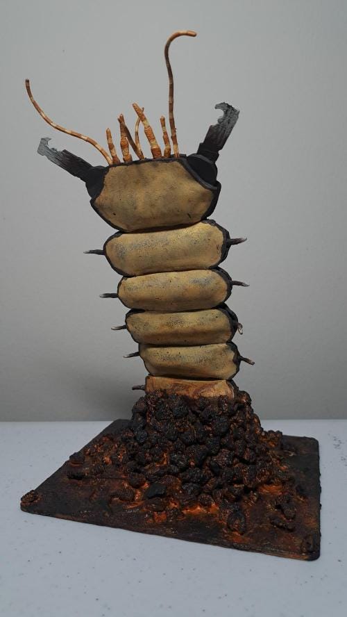 The funny worm monster I posted last month is done now! Like I mentioned then, I recorded my progress making this and want to turn that into a video later down the line. I'll have to get some other stuff done first since I also want to include animation in that video. I wrote up a whole bunch of worldbuilding stuff about this monster on Newgrounds, so click on the image to go check it out there. Looking back on it now, I feel like I could've added some more to the terrain to make it look more like magma, but I'm decently happy with how this turned out overall.