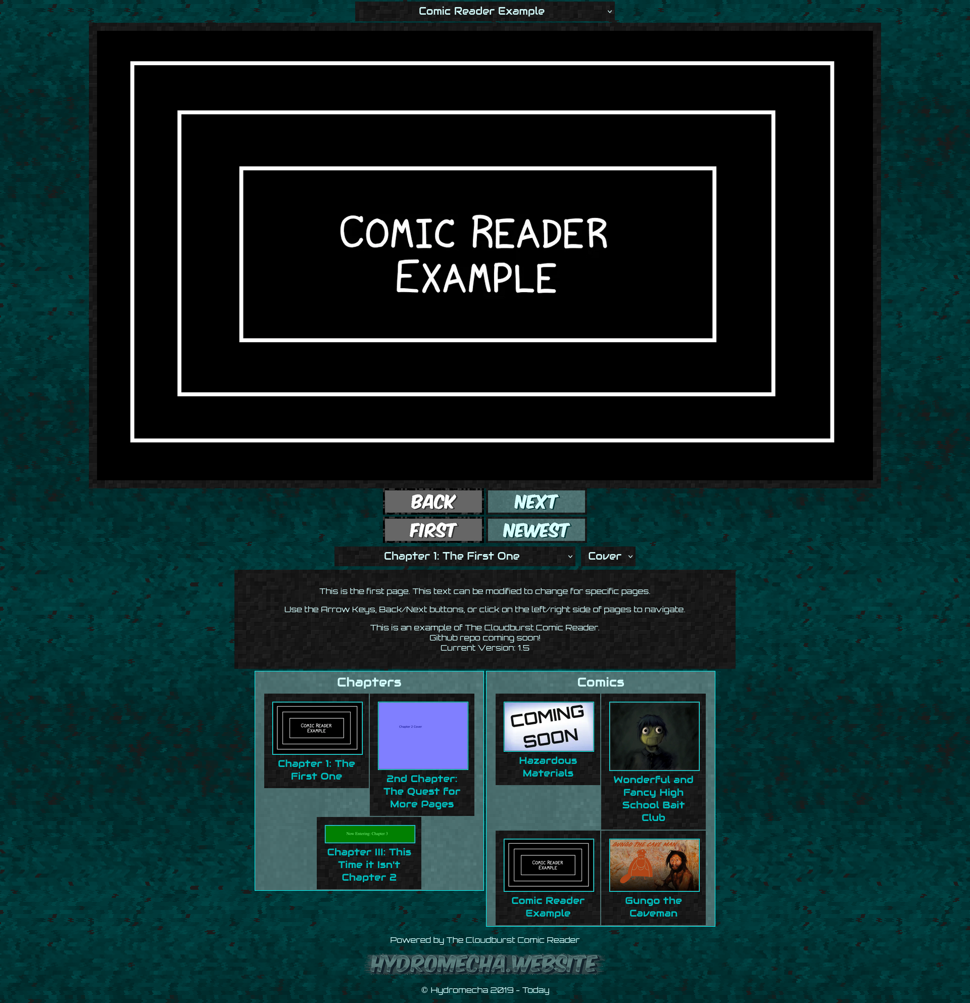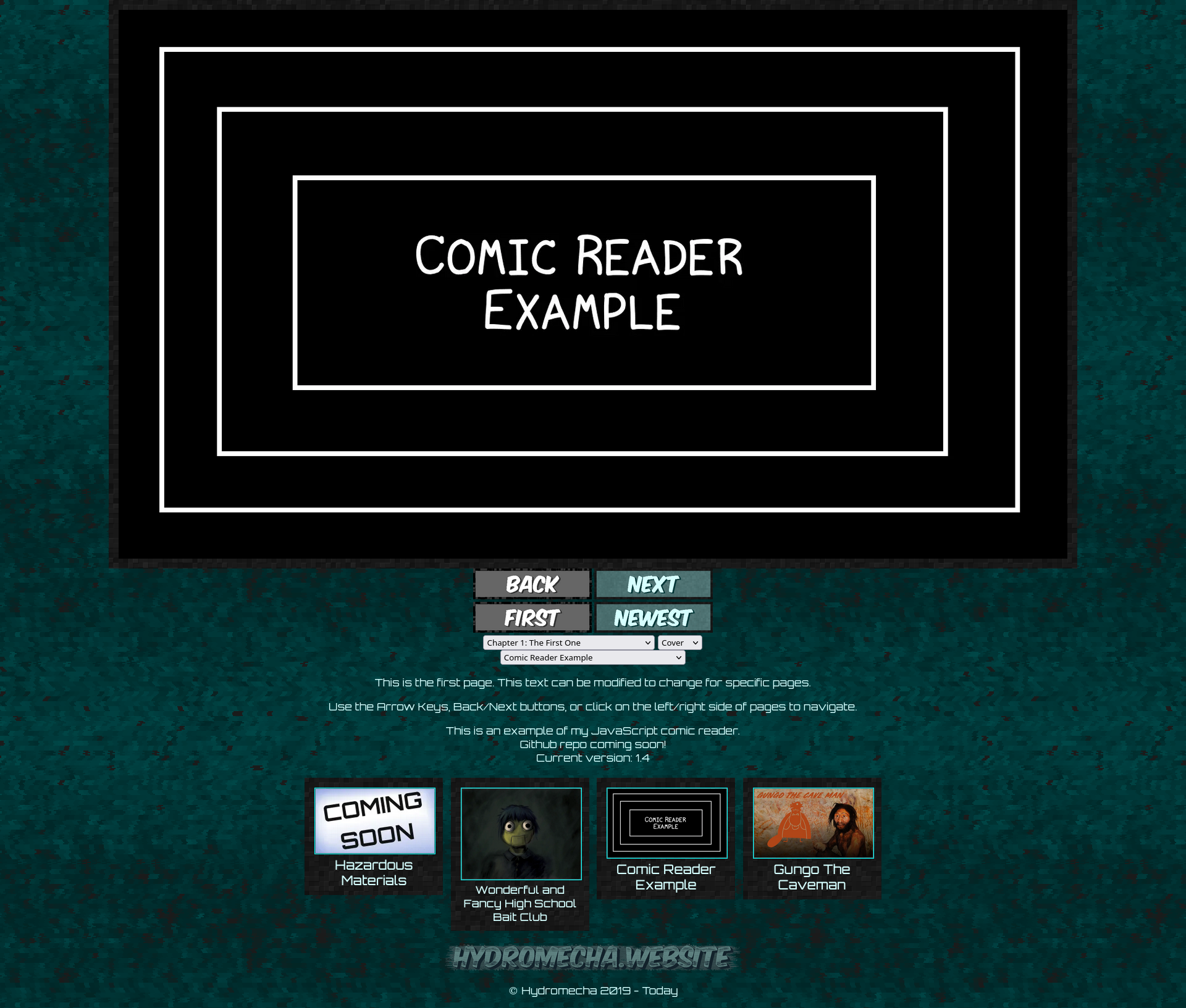 I've made a bunch of changes to the reader (some of which I talked about in the September 2024 Hydromecha Monthly) and to the website overall. We'll start with the comic reader changes.
