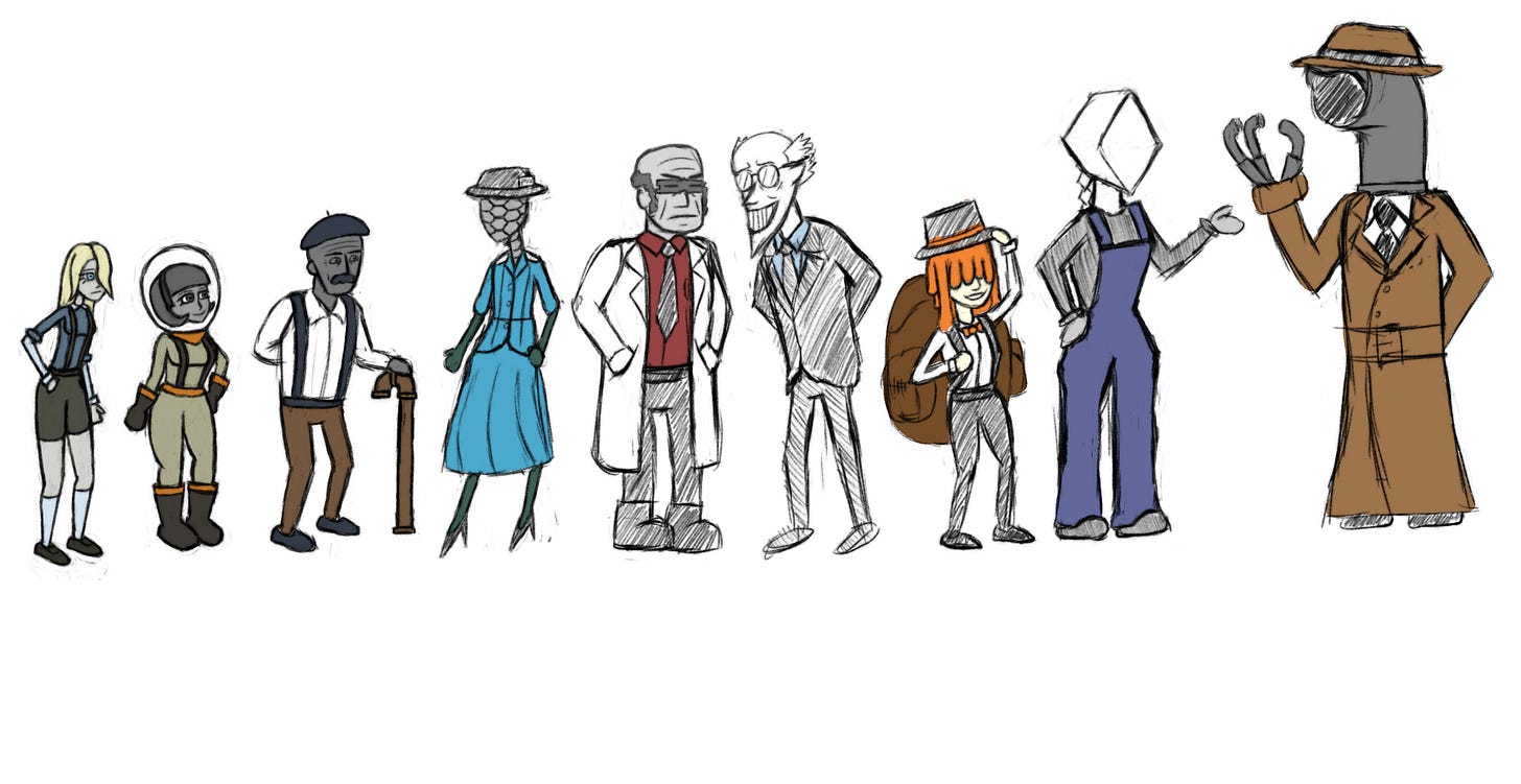 I got a bit more done on chapter 2’s script this month, with more of my effort going into sketching some character designs. As-is they’re pretty rough and I definitely want to go back over these to futz with the proportions and whatnot, but they should give you a good idea of what the characters look like.